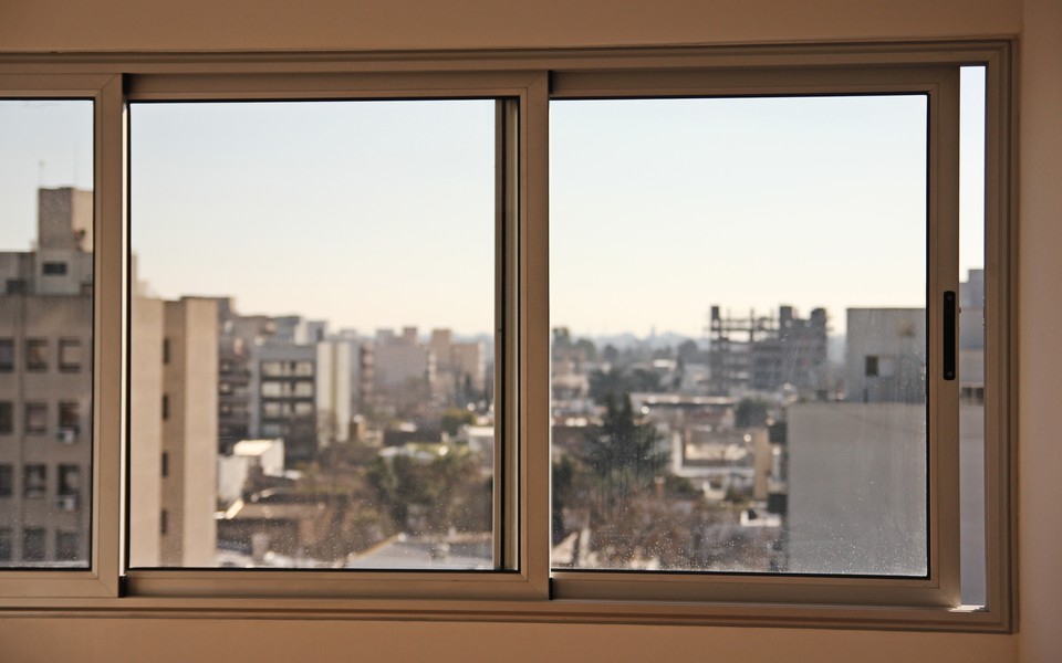 -Aberturas de aluminio anodizado línea Mónaco Top con vidrios laminados de seguridad.