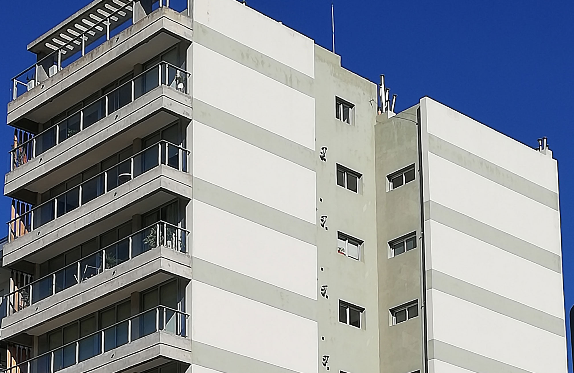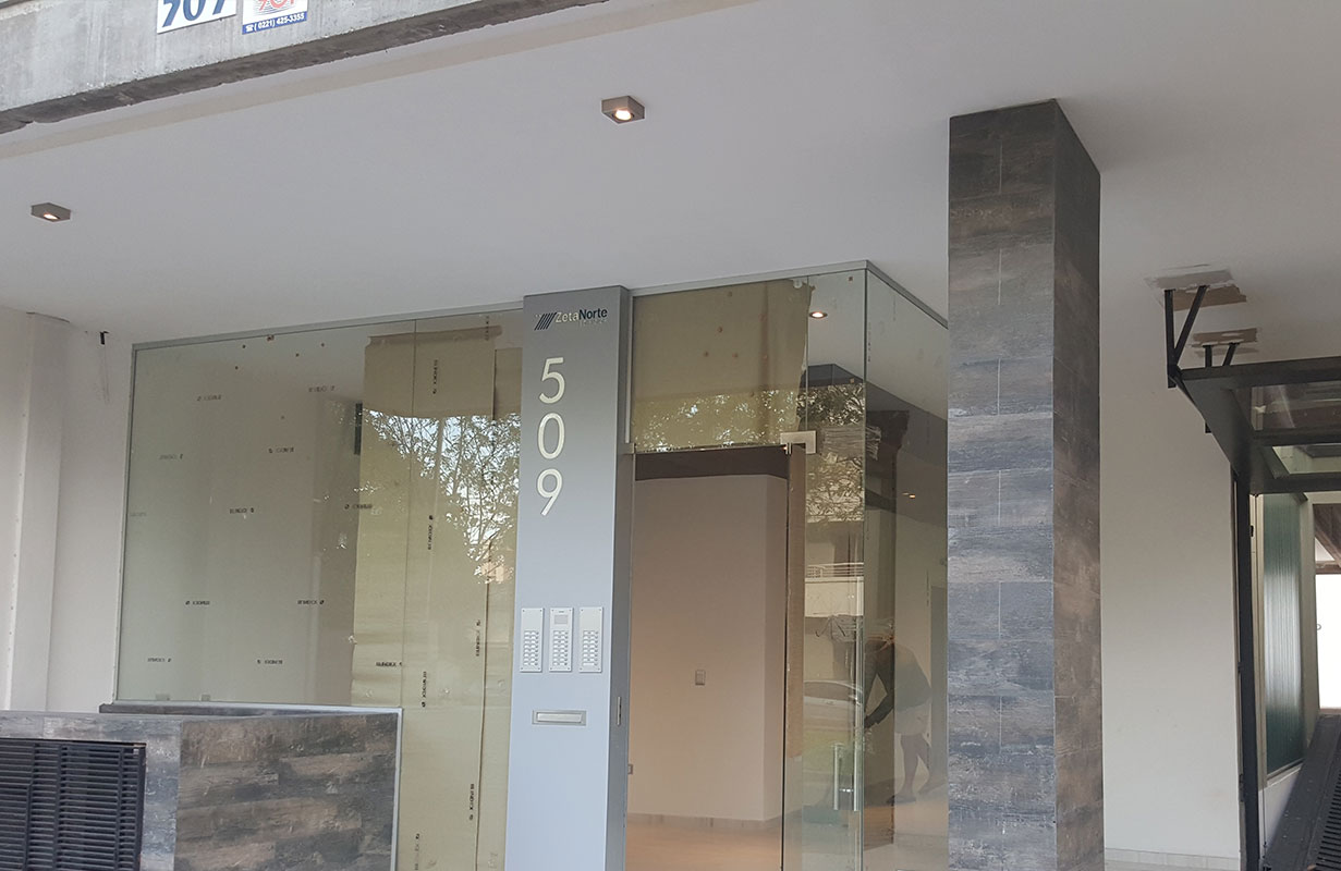 El sistema constructivo es de tipo tradicional con terminaciones exteriores en hormigón visto y cristal templado en balcones del frente.Las ventanas de todo el edificio están resueltas en aluminio anodizado natural línea Mónaco TOP de Alcemar o similar, con vidrios 4+4 de seguridad. Las aberturas del frente se desarrollan en las más amplias dimensiones otorgando de esta manera excelentes índices de ventilación e iluminación y una impactante vista de la catedral.
